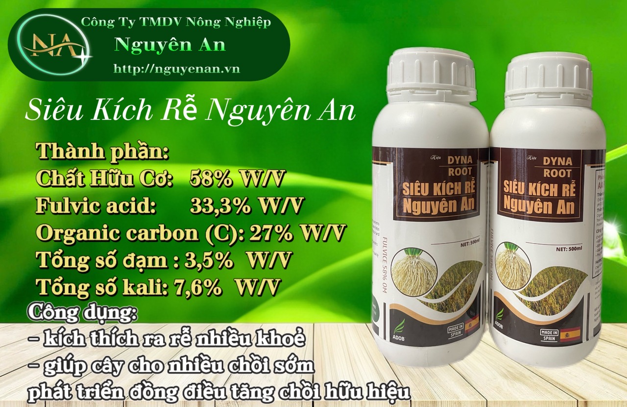 - Sản phẩm SIÊU KÍCH RỄ NGUYÊN AN chứa axit fulvic (27%) và hữu cơ lên đến (45%) so với các sản phẩm khác trên thị trường. SIÊU KÍCH RỄ NGUYÊN AN cung cấp dinh dưỡng hữu cơ nhanh chóng, kích thích hệ thống rễ phát triển khỏe mạnh và đâm sâu vào đất