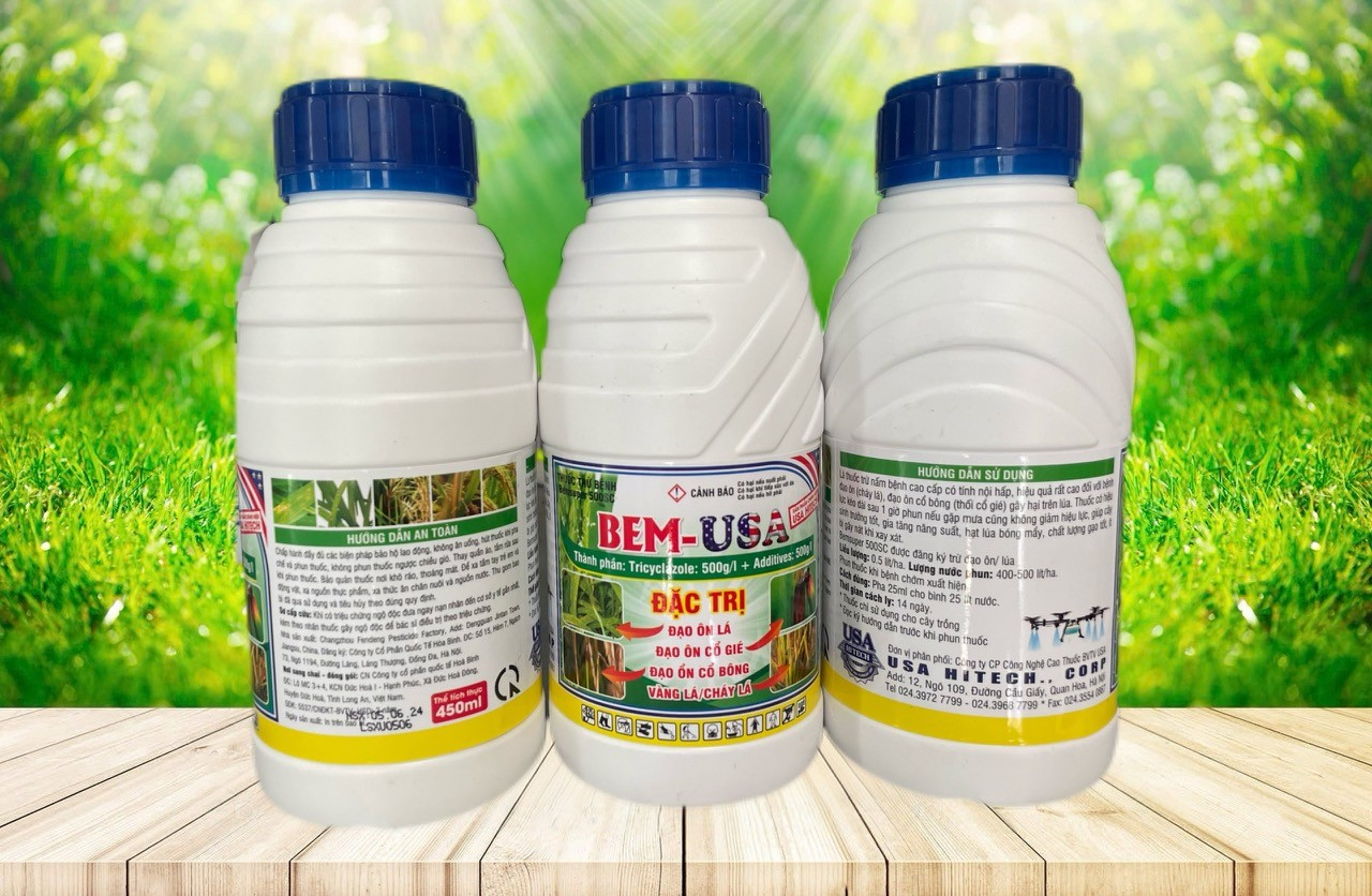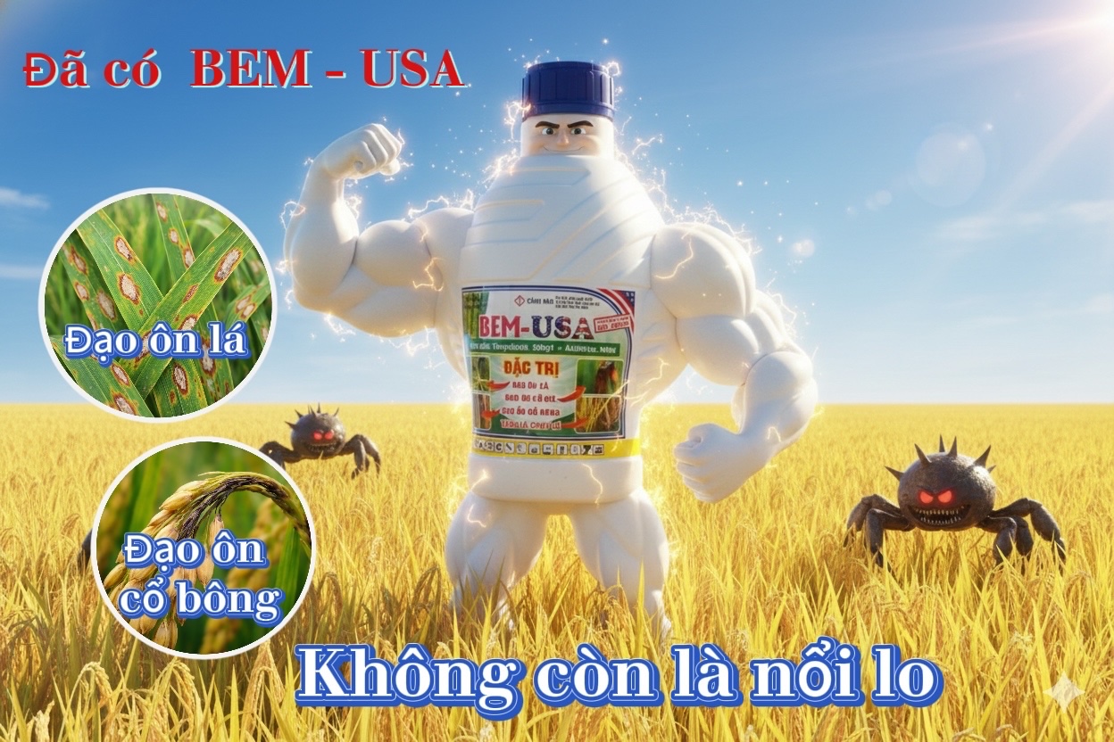BEM-USA: là thuốc thế hệ mới với công nghệ huyền phù đậm đặc hàm lượng cao nhất thị trường hiện nay, cho hạt thuốc siêu mịn làm tăng khả năng thẩm thấu, giúp cây trồng hấp thu nhanh chóng, ngăn chặn bệnh tức thì, hiệu quả cao trong việc phòng trừ đạo ôn (đạo ôn lá, đạo ôn cổ lá, đạo ôn cổ bông), bảo vệ cây trồng trước các bệnh hại khó kiểm soát.
